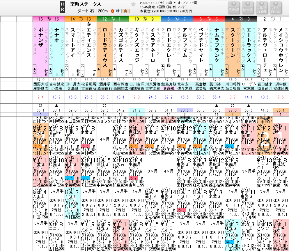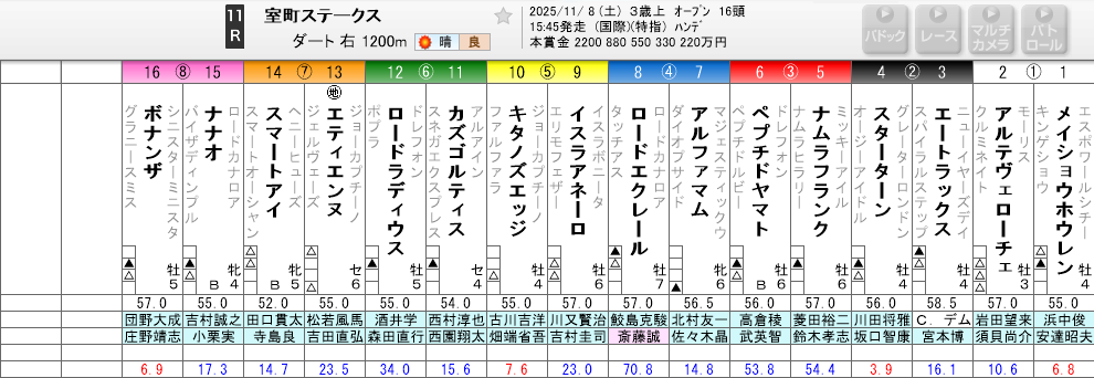 3着型:5ナムラフランク、3エートラックス、15ナナオの抑え