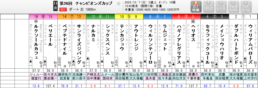 3着型:13サンライズジパング、12ナルカミ、1ウイリアムバローズ