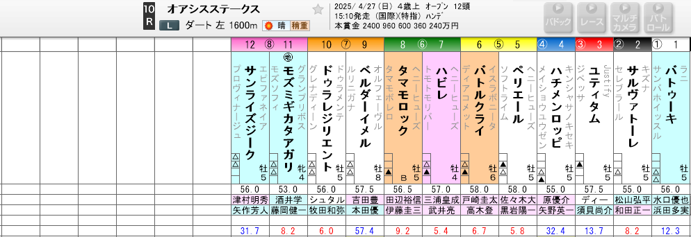 見立て:寄贈社およびレース名から四神が関連要素として外せない。対象は6、9、15、16号馬。そこにキャリアを合わせると9ゴーソーファー(津村明秀)には好感が持てる。あと、2枠と8枠にも注目。