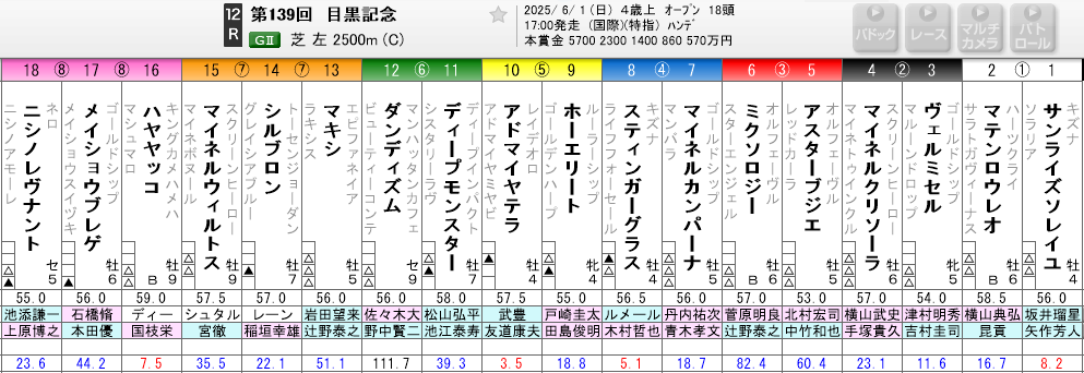 頑張り型:4マイネルクリソーラ、3ヴェルミセル(テーマが黒なら黒枠か)