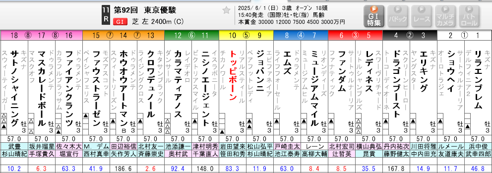 2 ショウヘイ、7 ミュージアムスマイル、9 ジョバンニ、17 マスカレードボール