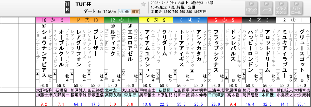 見立て:ダート戦の場合、前走逃げて勝った馬は連勝の可能性を549でチェック。