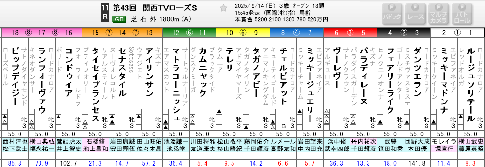 関西テレビ放送賞ローズステークス(秋華賞トライアル)の見解です。